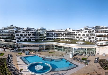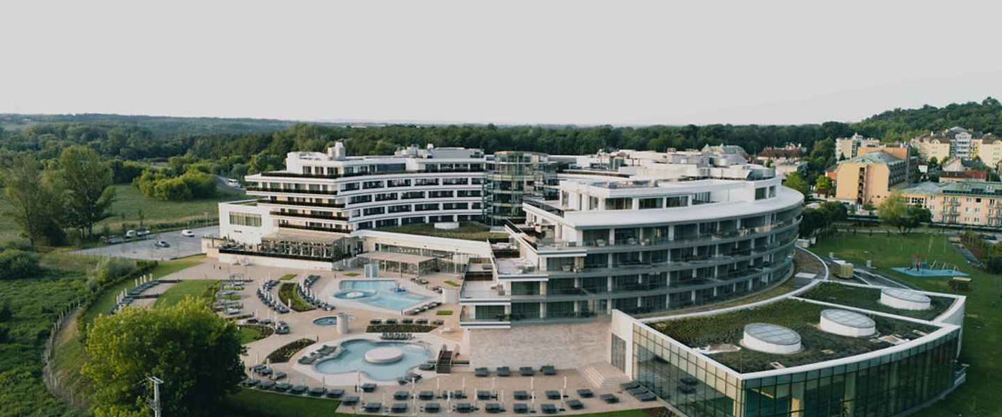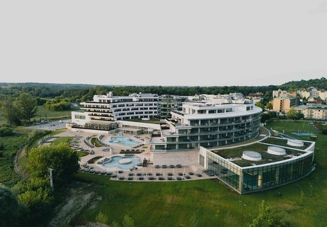 Hévíz ist eine Stadt in Ungarn, die im Komitat Zala liegt, in der Nähe des Balaton, des größten Sees Mitteleuropas. Sie ist vor allem für ihren Thermalsee bekannt, der als einer der größten natürlichen Thermalseen der Welt gilt. Hévíz zieht jährlich zahlreiche Touristen an, die die heilenden Eigenschaften des Wassers nutzen möchten, das reich an Mineralien ist und eine Temperatur von bis zu 38 Grad Celsius erreichen kann. Die Stadt hat eine lange Geschichte, die bis in die römische Zeit zurückreicht, als die heilenden Eigenschaften der Thermalquellen bereits geschätzt wurden. Im 18. Jahrhundert begann die Entwicklung von Hévíz als Kurort, was zur heutigen Bedeutung der Stadt als Wellness- und Erholungsziel führte.