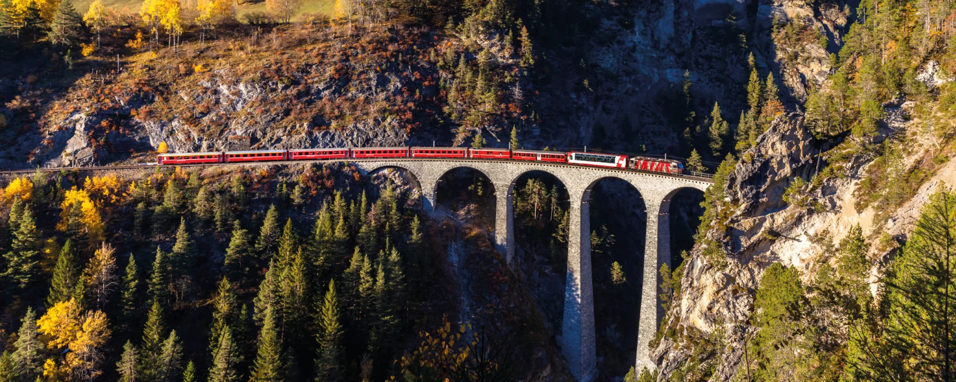 Genießen Sie das Alpenpanorama der Schweiz mit einem einzigartigen Zugerlebnis. Wilde Schluchten, liebliche Täler, kühn gebaute Bahntrassen, spektakuläre Viadukte und Kehrentunnel begleiten Sie während der Zugfahrten auf den Strecken vom Bernina- und Glacier Express.