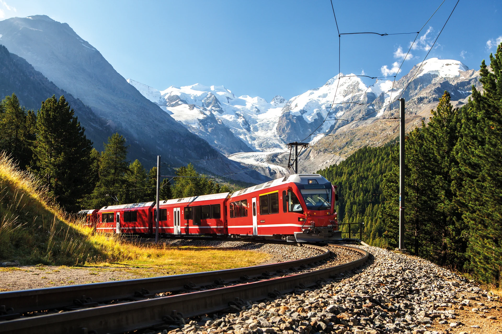 Der heutige Ausflug führt Sie über den Flüelapass nach St. Moritz im Oberengadin. Hier erwartet Sie eine unvergleichliche Bahnfahrt „Auf den Spuren des Bernina Express“ von St. Moritz nach Tirano. Genießen Sie die atemberaubende Landschaft, die sich Ihnen während der Fahrt bietet. Nach einem erlebnisreichen Tag kehren Sie mit dem Bus über den Bernina-Pass und den Julierpass nach Davos zurück.